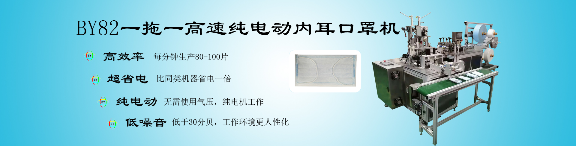 產品直通車:BY82一拖一高速純電動平面內耳包邊口罩機BY53交叉點帶口罩機BY09頭掛式口罩機折疊本體口罩機BY40 N95全自動一體折疊口罩機